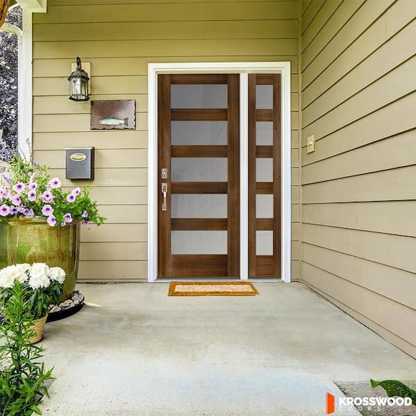 50 in. x 80 in. Modern Hemlock 5-Lite Right-Hand/Inswing Frosted Glass Provincial Stain Wood Prehung Front Door w/RSL