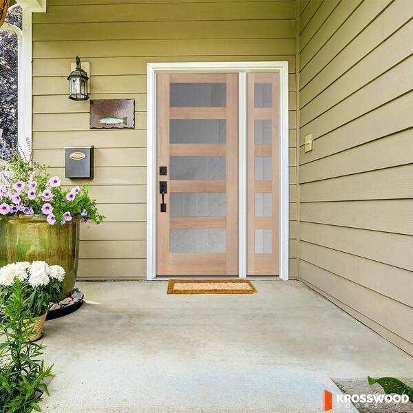 50 in. x 80 in. Modern Hemlock 5-Lite Right-Hand/Inswing Frosted Glass Unfinished Wood Prehung Front Door w/RSL