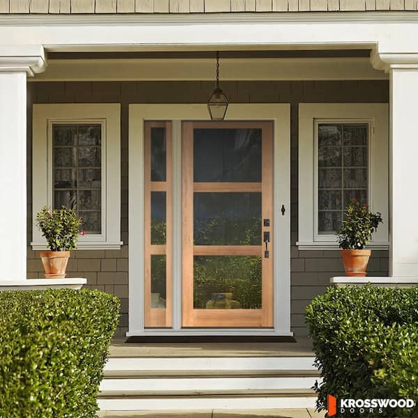 50 in. x 80 in. Modern Hemlock Left-Hand/Inswing 3-Lite Clear Glass Clear Stain Wood Prehung Front Door w/Left Sidelite
