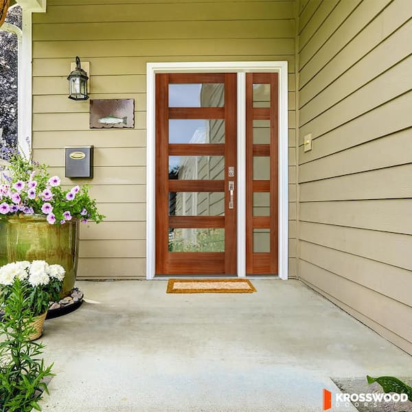 50 in. x 80 in. Modern Hemlock Left-Hand/Inswing 5-Lite Clear Glass Red Chestnut Stain Wood Prehung Front Door