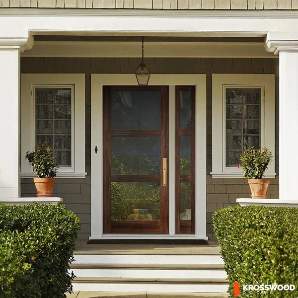 50 in. x 80 in. Modern Hemlock Left-Hand/Inswing Clear Glass Red Mahogany Stain Wood Prehung Front Door with Sidelite