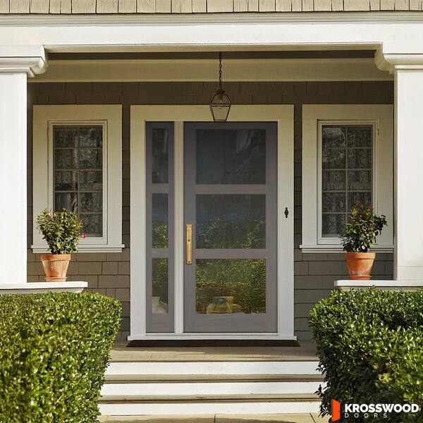50 in. x 80 in. Modern Hemlock Right-Hand/Inswing 3-Lite Clear Glass Grey Stain Wood Prehung Front Door w/Left Sidelite