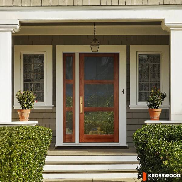 50 in. x 80 in. Modern Hemlock Right-Hand/Inswing 3-Lite Clear Glass Red Chestnut Stain Wood Prehung Front Door with LSL