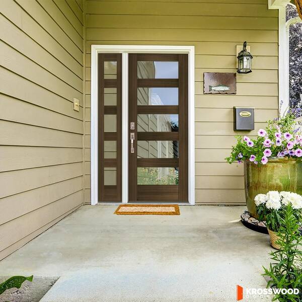 50 in. x 80 in. Modern Hemlock Right-Hand/Inswing 5-Lite Clear Glass Black Stain Wood Prehung Front Door w/Sidelite