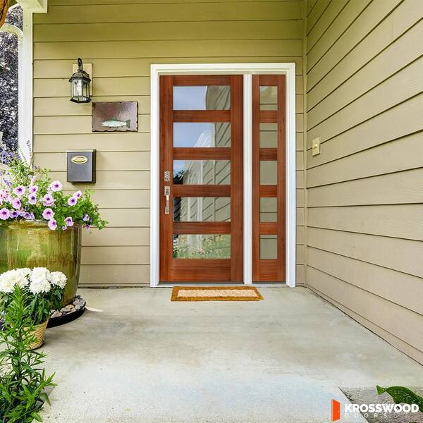 50 in. x 80 in. Modern Hemlock Right-Hand/Inswing 5-Lite Clear Glass Red Chestnut Stain Wood Prehung Front Door