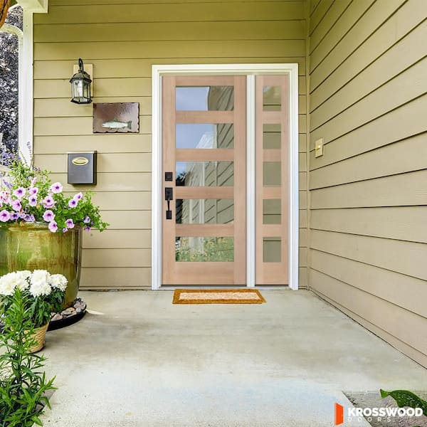 50 in. x 80 in. Modern Hemlock Right-Hand/Inswing 5-Lite Clear Glass Unfinished Wood Prehung Front Door w/Right Sidelite