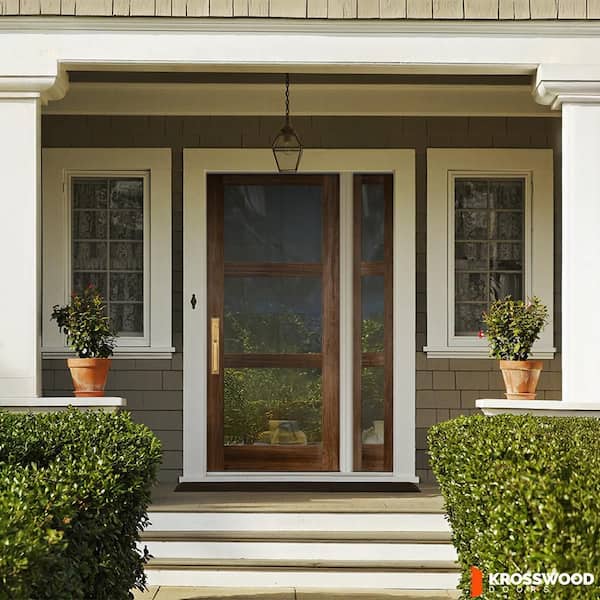 50 in. x 80 in. Modern Hemlock Right-Hand/Inswing Clear Glass Provincial Stain Wood Prehung Front Door with Sidelite