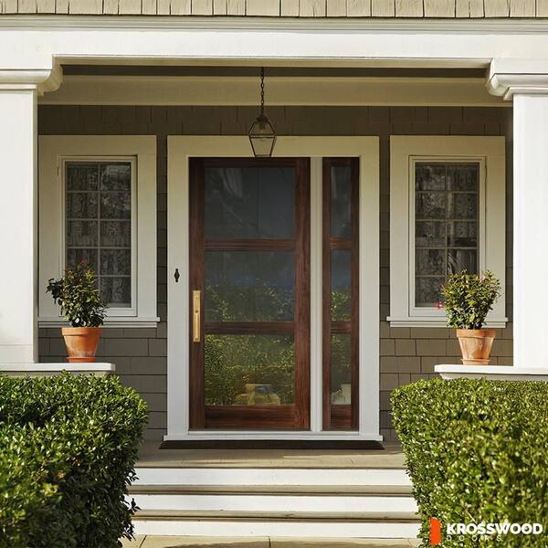 50 in. x 80 in. Modern Hemlock Right-Hand/Inswing Clear Glass Red Mahogany Stain Wood Prehung Front Door with Sidelite