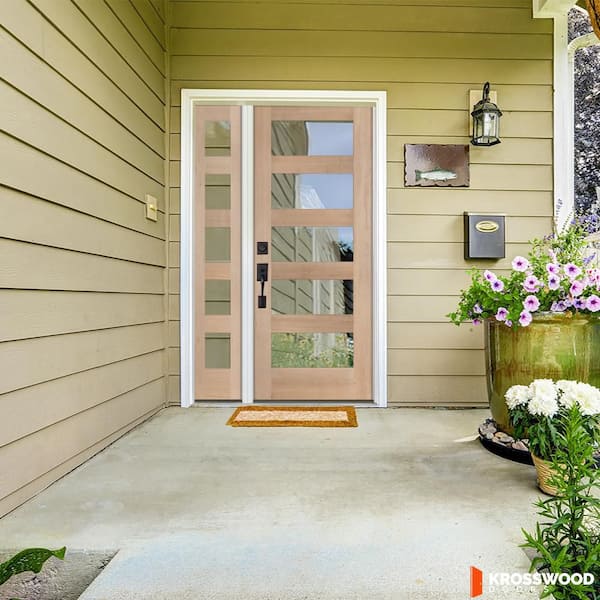 50 in. x 80 in. Modern Hemlock Right-Hand/Inswing Clear Glass unfinished Wood Prehung Front Door with Left Sidelite