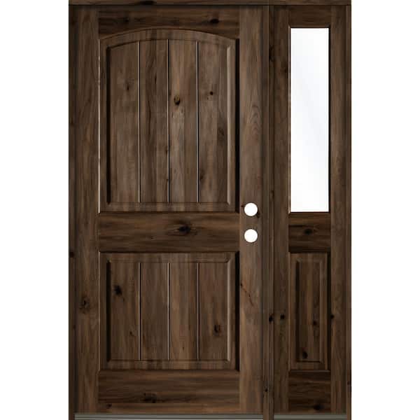 50 in. x 80 in. Rustic Knotty Alder 2 Panel Left-Hand/Inswing Clear Glass Black Stain Wood Prehung Front Door with RHSL