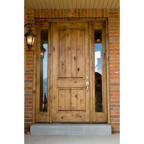 50 in. x 80 in. Rustic Knotty Alder Left-Hand/Inswing Clear Glass Red Mahogany Stain Wood Prehung Front Door w/Sidelite