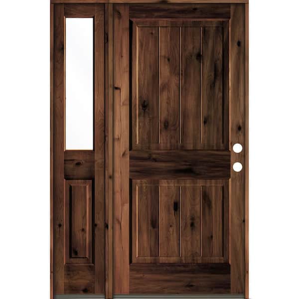 50 in. x 80 in. Rustic Knotty Alder Left-Hand/Inswing Clear Glass Red Mahogany Stain Wood Prehung Front Door w/Sidelite