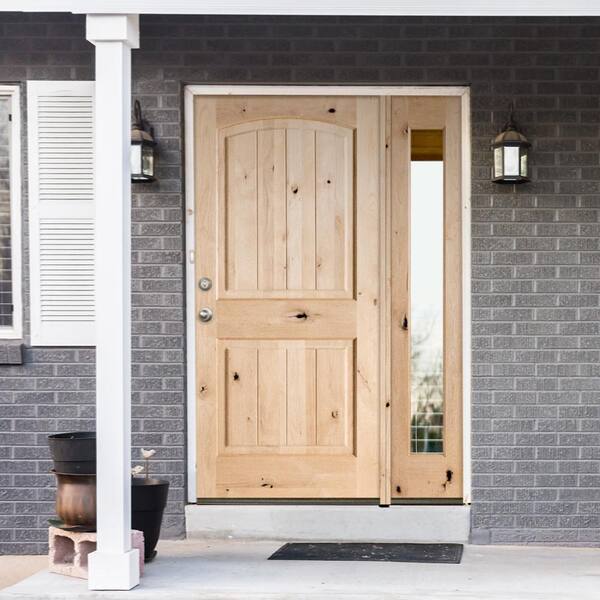 50 in. x 80 in. Rustic Knotty Alder Right-Hand/Inswing Clear Glass Provincial Stain Wood Prehung Front Door with RFSL