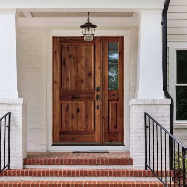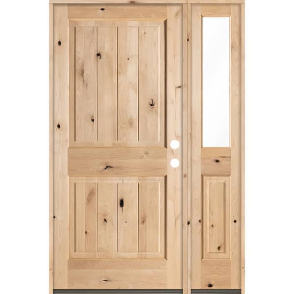50 in. x 80 in. Rustic Knotty Alder Sq-Top VG Unfinished Left-Hand Inswing Prehung Front Door with Right Half Sidelite