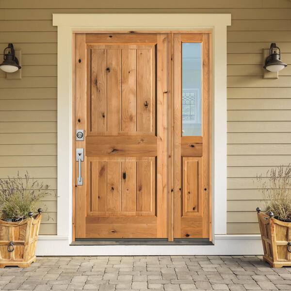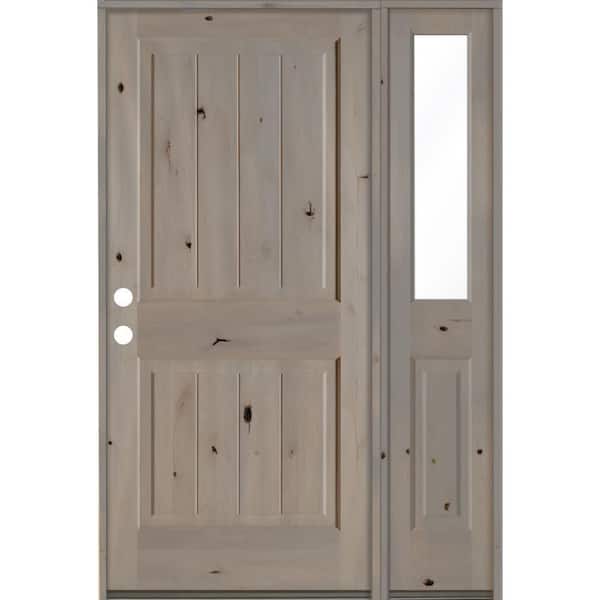 50 in. x 80 in. Rustic Knotty Alder Square Top Right-Hand/Inswing Clear Glass Grey Stain Wood Prehung Front Door w/RHSL