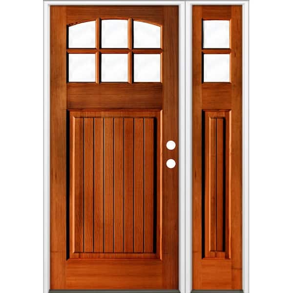 50 in. x 80 in. V-Groove Arch 6-Lite Clear Glass Red Chestnut Stain Left Hand Hemlock Wood Prehung Front Door w/RSL