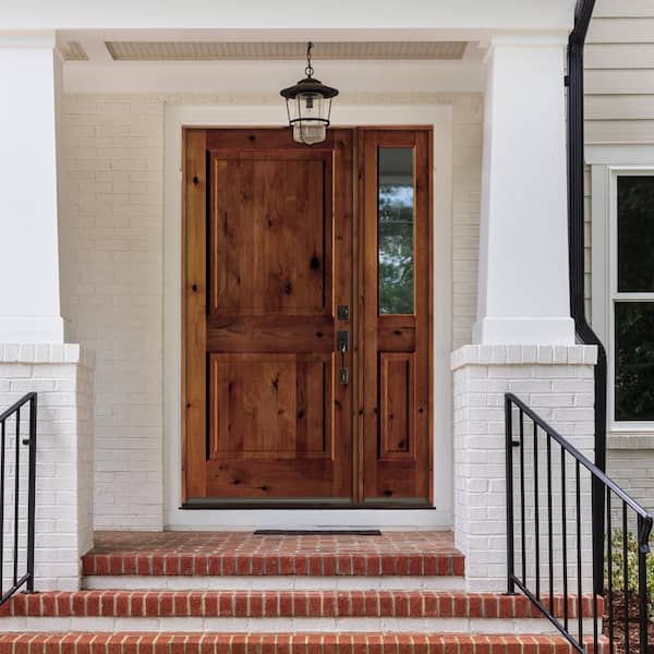 50 in. x 80 in. knotty alder Left-Hand/Inswing Clear Glass Provincial Stain Square Top Wood Prehung Front Door w/RHSL