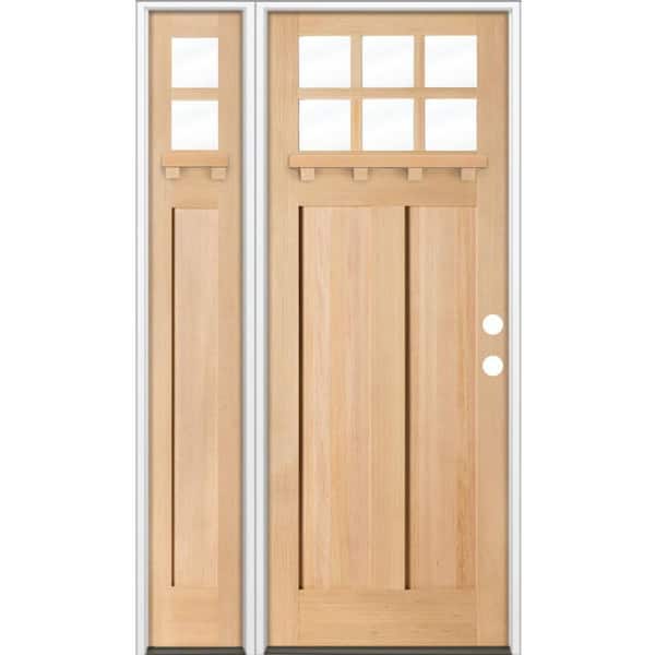50 in. x 96 in. 6-Lite Craftsman Left Hand Unfinished Hemlock Prehung Front Door Left Sidelite
