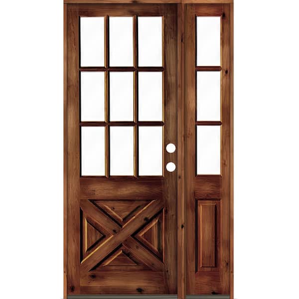 50 in. x 96 in. Alder 2-Panel Left-Hand/Inswing Clear Glass Red Chestnut Stain Wood Prehung Front Door w/Right Sidelite