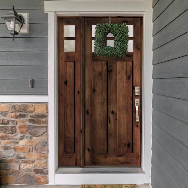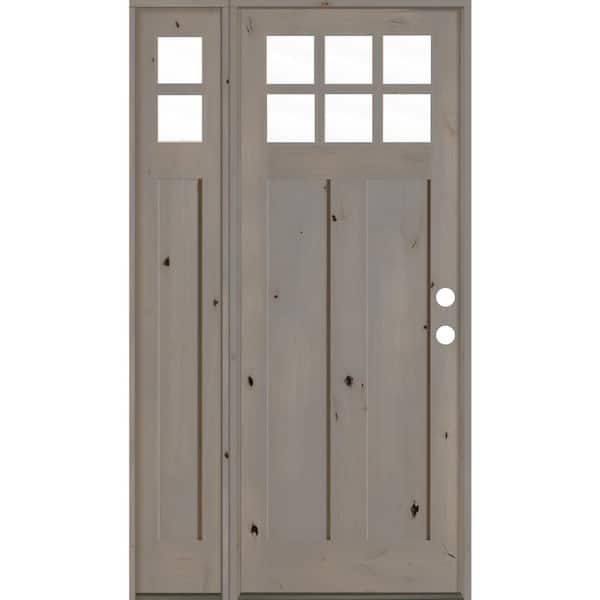 50 in. x 96 in. Craftsman 2 Panel Left Hand 6Lite Clear Glass Alder Gray Stain Wood Prehung Front Door /Left Sidelite