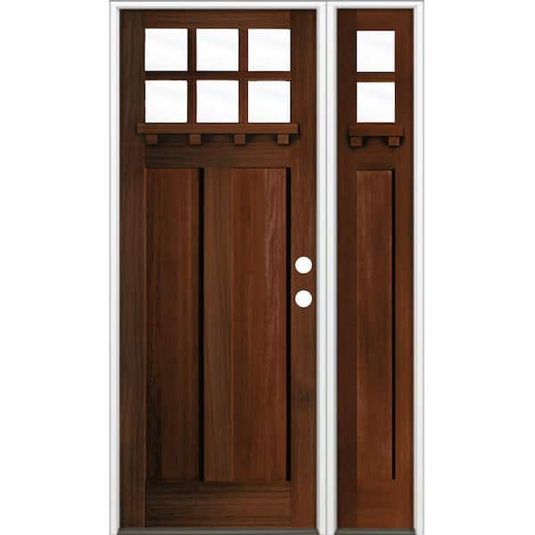50 in. x 96 in. Craftsman 6-Lite Left-Hand/Inswing Clear Glass Red Mahogany Stain Hemlock Wood Prehung Front Door w/RSL