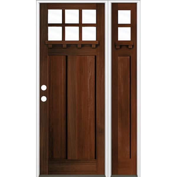 50 in. x 96 in. Craftsman 6-Lite Right-Hand/Inswing Clear Glass Red Mahogany Stain Hemlock Wood Prehung Front Door w/RSL