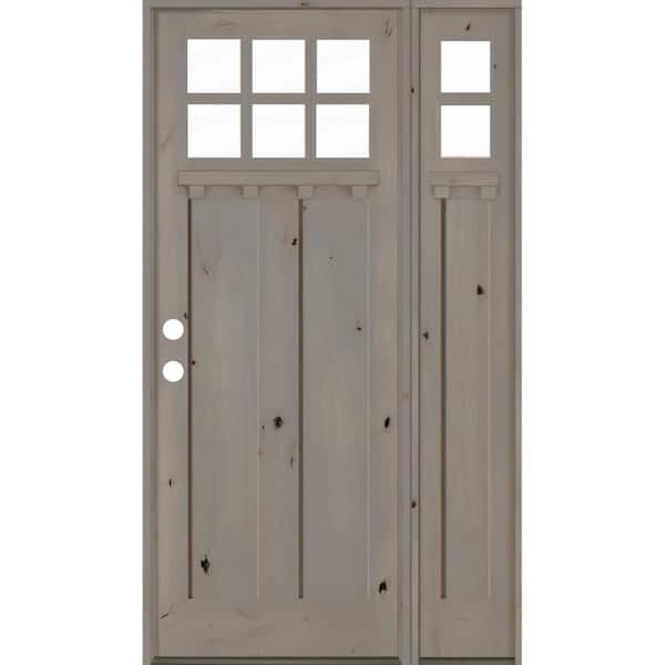 50 in. x 96 in. Craftsman Knotty Alder 2 Panel Right-Hand 6 Lite Clear Glass DS Gray Wood Prehung Front Door/Sidelite