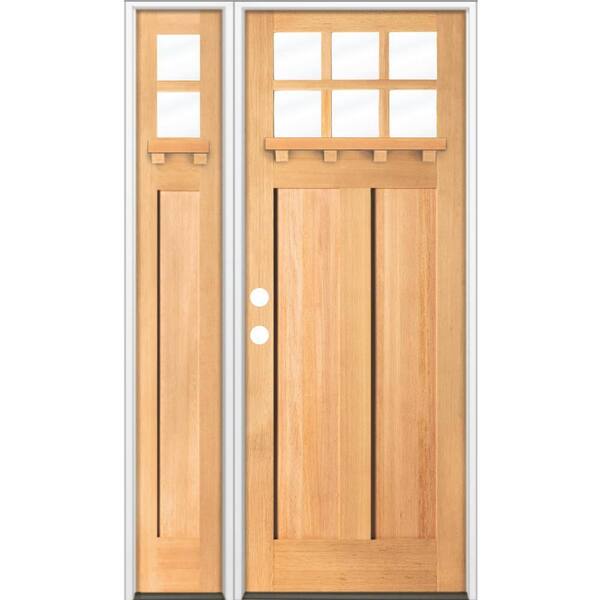 50 in. x 96 in. Craftsman Right Hand 6-Lite Clear Stain Hemlock Prehung Front Door Left Sidelite
