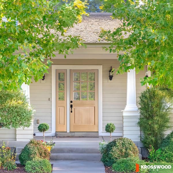 50 in. x 96 in. Farmhouse 9-Lite Clear Glass Right-Hand Unfinished Hemlock Wood Prehung Front Door w/ LSL