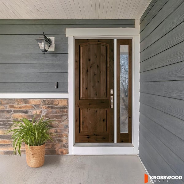 50 in. x 96 in. Knotty Alder 2-Panel Arch-Top Left-Hand/Inswing Clear Glass Espresso Stain Wood Prehung Front Door RFSL
