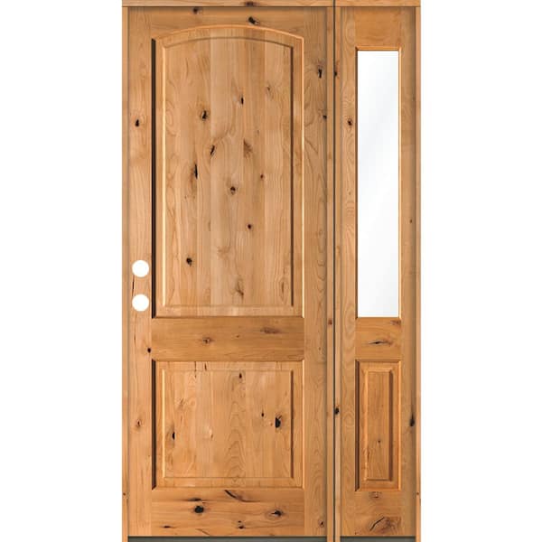 50 in. x 96 in. Knotty Alder 2 Panel Right-Hand/Inswing Clear Glass Clear Stain Wood Prehung Front Door w/Right Sidelite