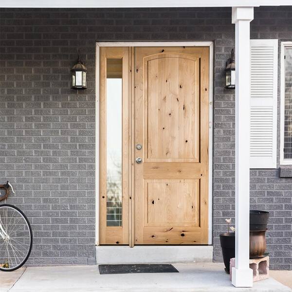50 in. x 96 in. Knotty Alder 2-Panel Right-Hand/Inswing Clear Glass Grey Stain Wood Prehung Front Door w/ Left Sidelite