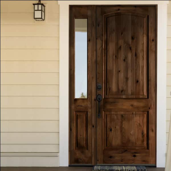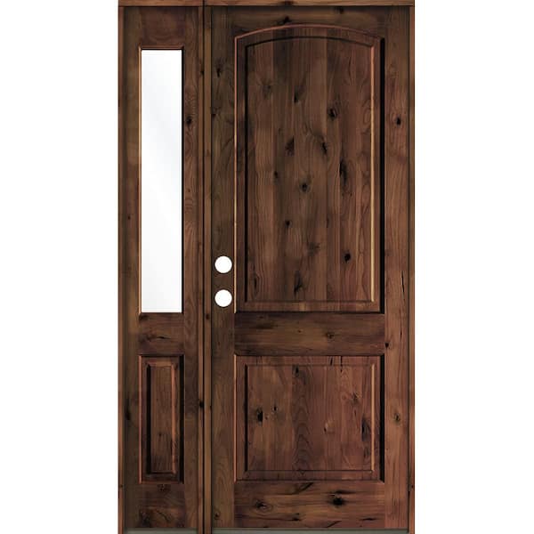 50 in. x 96 in. Knotty Alder 2 Panel Right-Hand/Inswing Clear Glass Red Mahogany Stain Wood Prehung Front Door