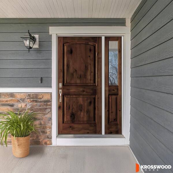 50 in. x 96 in. Knotty Alder 2-Panel Right-Hand/Inswing Clear Glass Red Mahogany Stain Wood Prehung Front Door RHSL