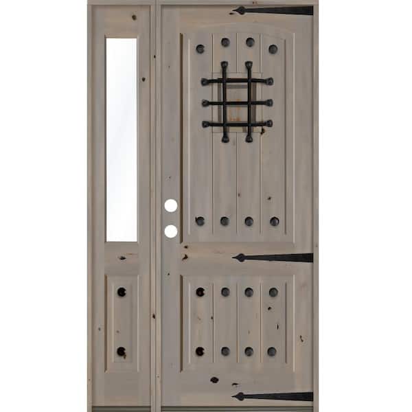 50 in. x 96 in. Mediterranean Knotty Alder Right-Hand/Inswing Clear Glass Grey Stain Wood Prehung Front Door w/Sidelite