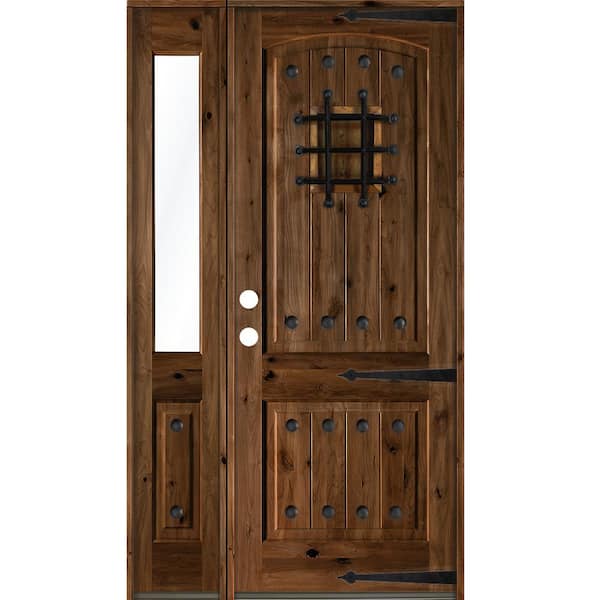 50 in. x 96 in. Mediterranean Knotty Alder Right-Hand/Inswing Clear Glass Provincial Stain Wood Prehung Front Door