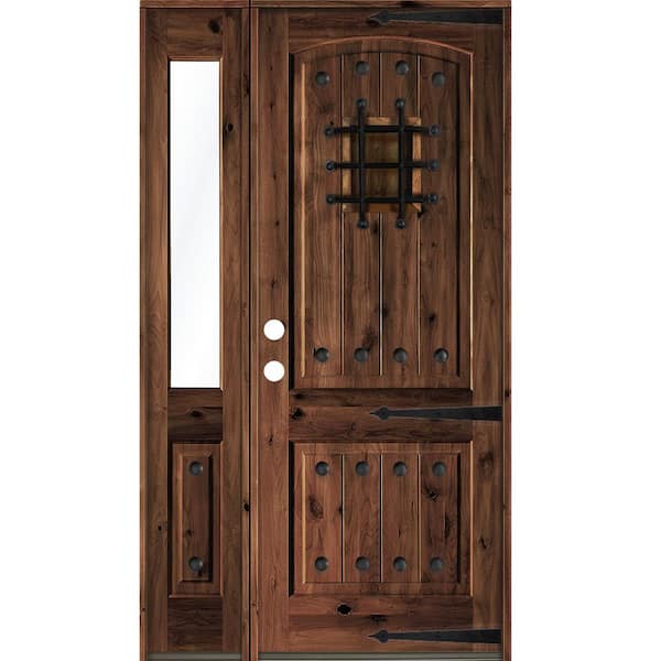 50 in. x 96 in. Mediterranean Knotty Alder Right-Hand/Inswing Clear Glass Red Mahogany Stain Wood Prehung Front Door