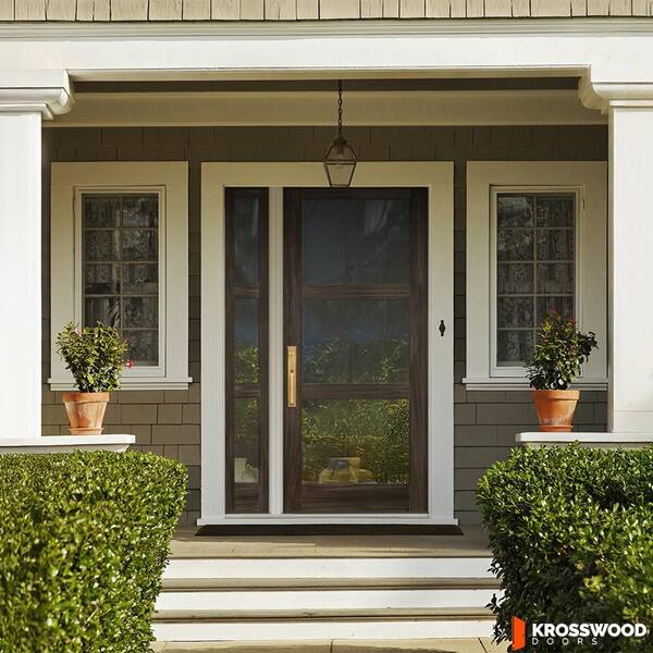 50 in. x 96 in. Modern Hemlock Right-Hand/Inswing 3-Lite Clear Glass Black Stain Wood Prehung Front Door w/Left Sidelite
