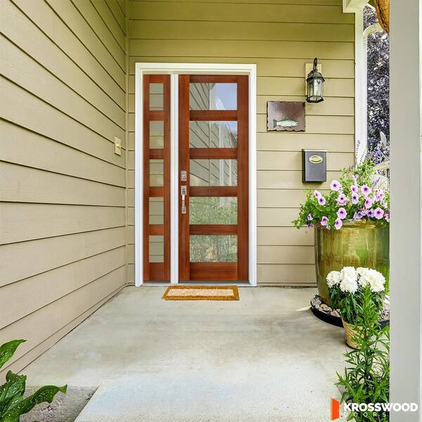 50 in. x 96 in. Modern Hemlock Right-Hand/Inswing 5-Lite Clear Glass Red Chestnut Stain Wood Prehung Front Door