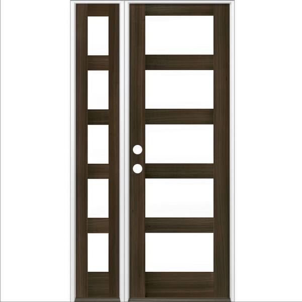 50 in. x 96 in. Modern Hemlock Right-Hand/Inswing Clear Glass Black Stain Wood Prehung Front Door with Left Sidelite