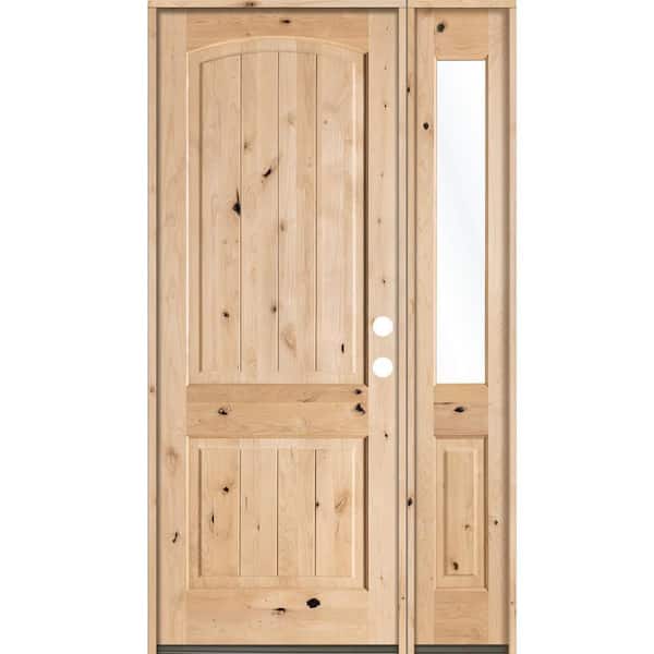 50 in. x 96 in. Rustic Knotty Alder Arch Top VG Unfinished Left-Hand Inswing Prehung Front Door/Right Half Sidelite