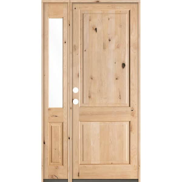 50 in. x 96 in. Rustic Knotty Alder Unfinished Right-Hand Inswing Prehung Front Door with Left-Hand Half Sidelite