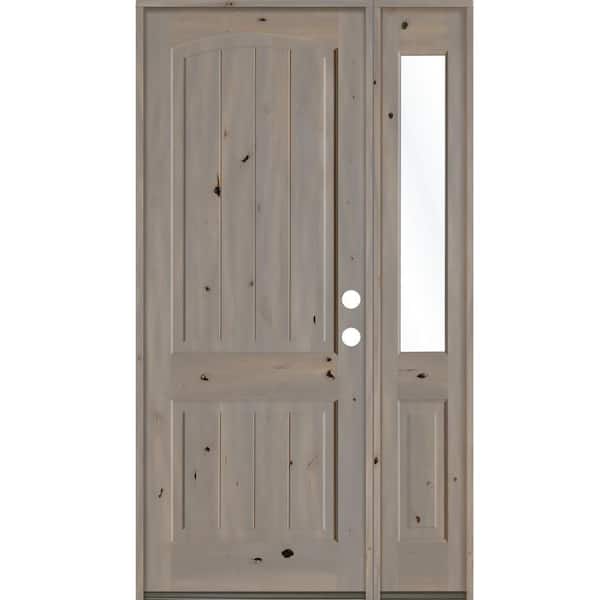 50 in. x 96 in. Rustic knotty alder 2 Panel Left-Hand/Inswing Clear Glass Grey Stain Wood Prehung Front Door with RHSL