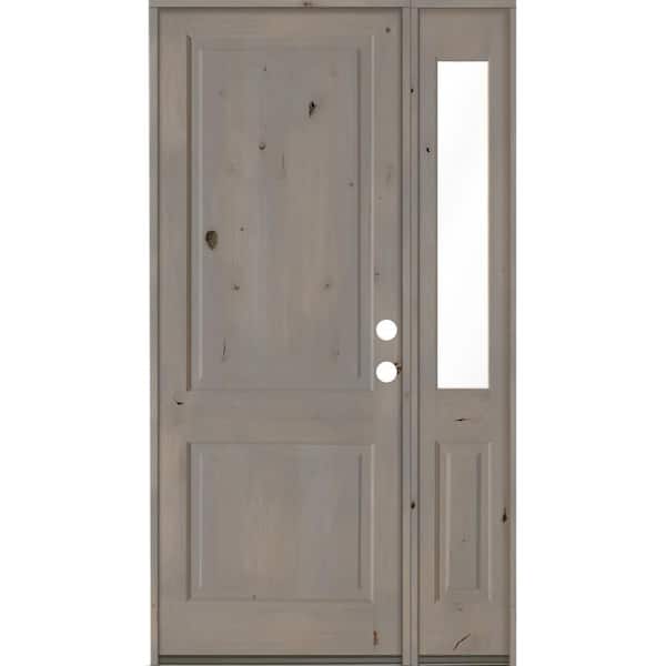 50 in. x 96 in. Rustic knotty alder Left-Hand/Inswing Clear Glass Grey Stain Square Top Wood Prehung Front Door w/RHSL
