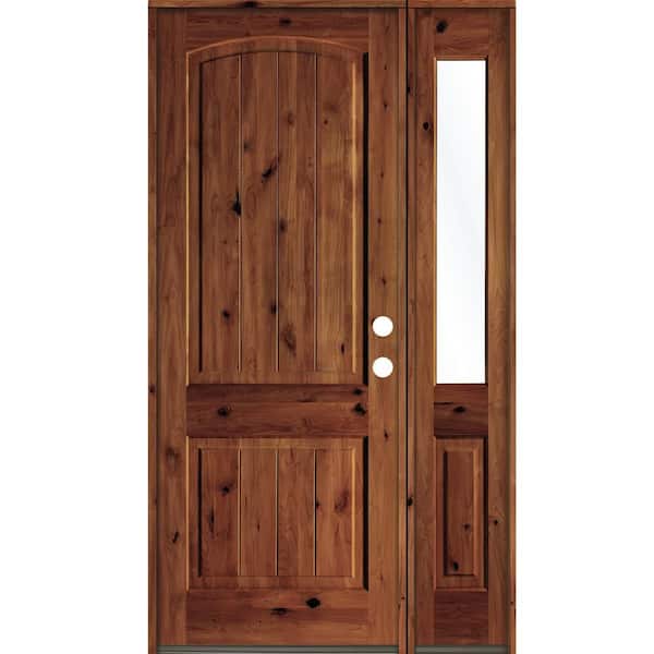 50 in. x 96 in. Rustic knotty alder Left-Hand/Inswing Clear Glass Red Chestnut Stain Wood Prehung Front Door with RHSL