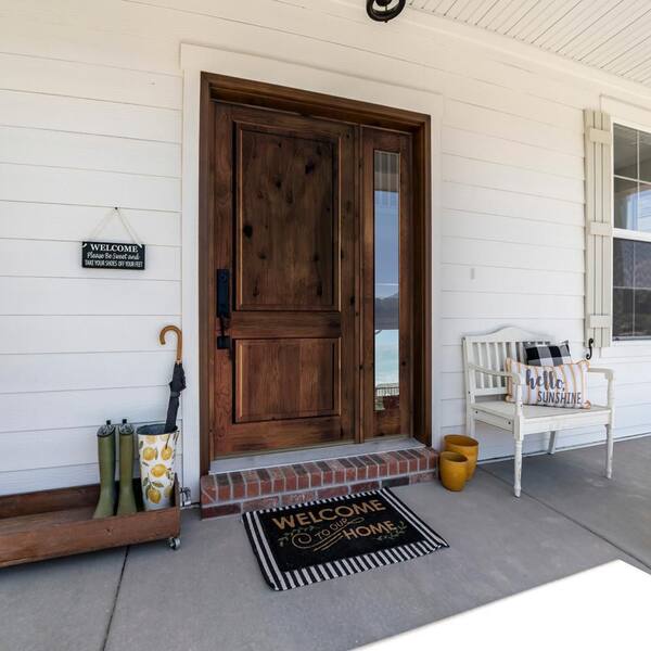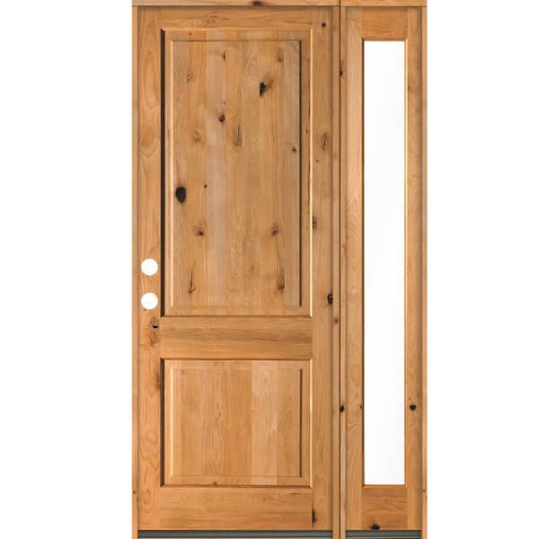 50 in. x 96 in. Rustic knotty alder Right-Hand/Inswing Clear Glass Clear Stain Square Top Wood Prehung Front Door w/RFSL