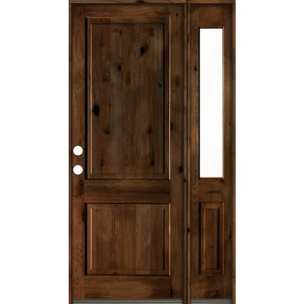 50 in. x 96 in. knotty alder Right-Hand/Inswing Clear Glass Provincial Stain Square Top Wood Prehung Front Door w/RHSL