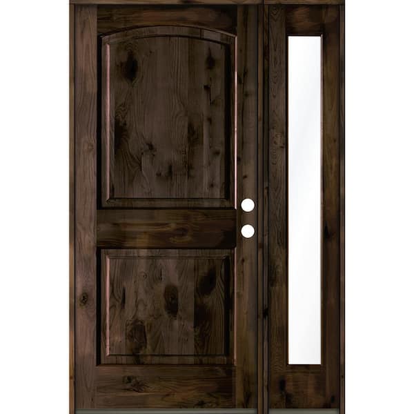 56 in. x 80 in. Alder 2-Panel Left-Hand/Inswing Clear Glass Black Stain Wood Prehung Front Door with Right Sidelite