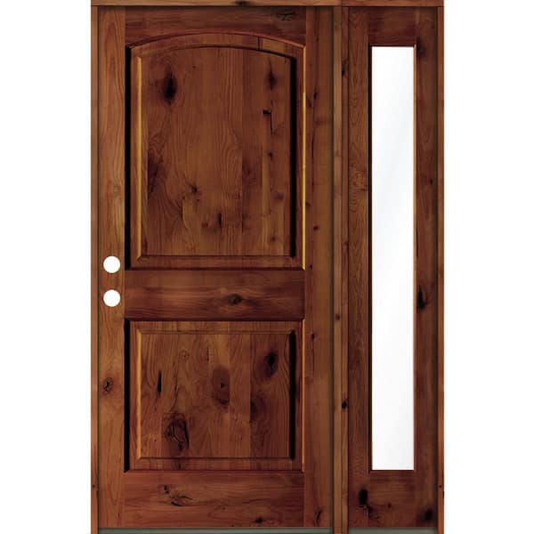56 in. x 80 in. Knotty Alder 2-Panel Right-Hand/Inswing Clear Glass Red Chestnut Stain Wood Prehung Front Door