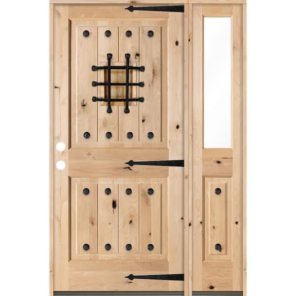 56 in. x 80 in. Mediterranean Knotty Alder Sq Unfinished Right-Hand Inswing Prehung Front Door with Right Half Sidelite